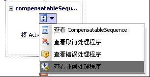 CompensatableSequence活动就是一个容器,用来指定某一个补偿区域,表示某一类型的异常会执行某一区域的补偿措施。它有一个专门用于存放补偿措施的“查看补偿处理程序”。如下图: