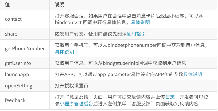 详看:https://developers.weixin.qq.com/miniprogram/dev/component/button.html