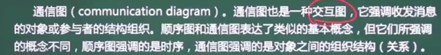 顺序图和通信图都是交互图,但顺序图强调时序,而通信图强调的是对象之间的组织结构(关系)