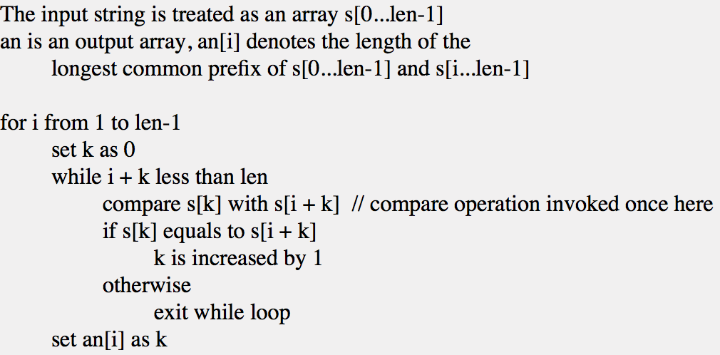 We are wondering, for any given string, what is the number of compare operations invoked if we use the above algorithm. Please tell us the answer before we attempt to run this algorithm.