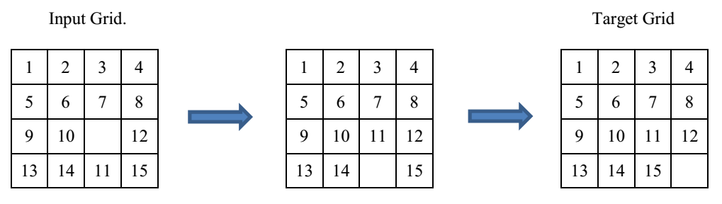 You are given a 4 × 4 grid, which consists of 15 number cells and an empty cell.