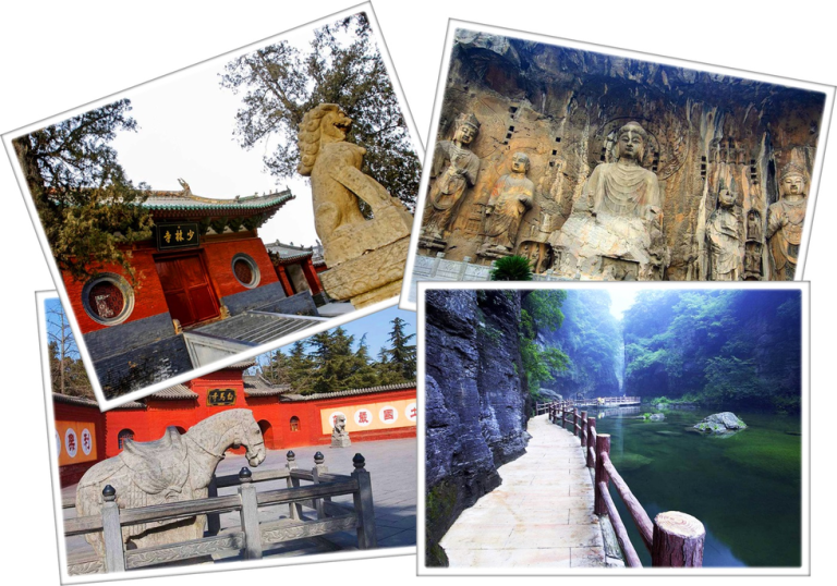 Longmen Grottoes, are some of the finest examples of Chinese Buddhist art. Housing tens of thousands of statues of Buddha and his disciples, they are located 1212kilometres (7.57.5 mi) south of present-day Luoyang in Henan province.