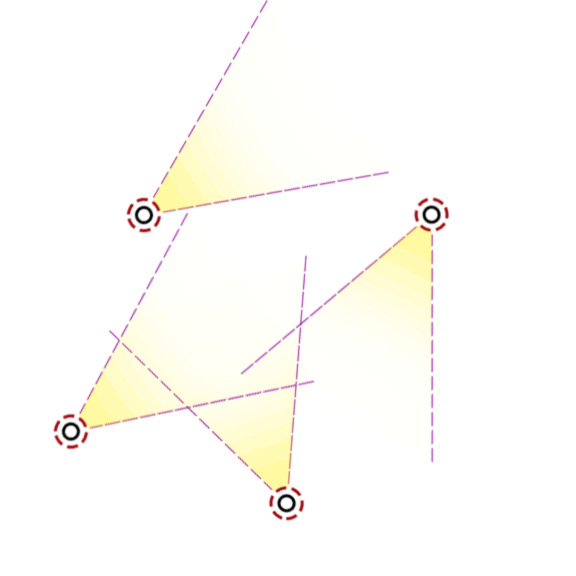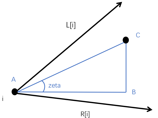 得到角度 zeta 后,比较其与 L[i]、R[i] 的大小,即可知道点 j 是否在点 i 的视野范围内,若在 j 在 i 视野范围内,就建一条从 i 到 j 的边,表示只有先消除点 i 才能消除点 j