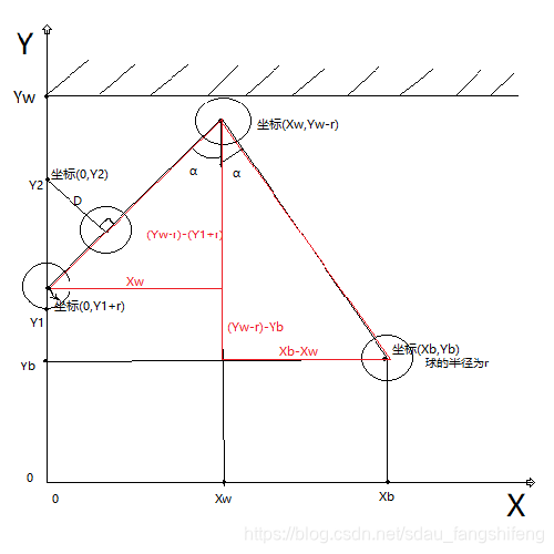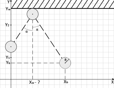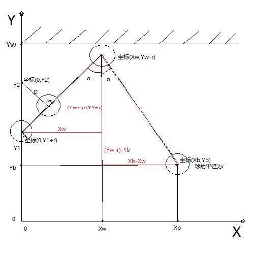double dis=getDis(0.0, y2, 0.0, y1+r, xw, yw-r);