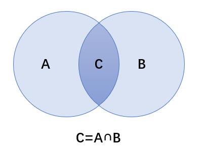交集是由属于 A 且属于 B 的相同元素组成的集合,记作:A∩B