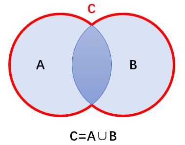 并集是由属于集合 A 或属于集合 B 的所有元素所组成的集合,记作:A∪B