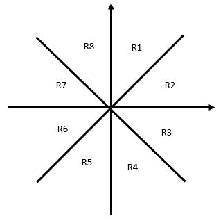 考虑点 (x,y) 在 R1~R4 四个象限的条件: