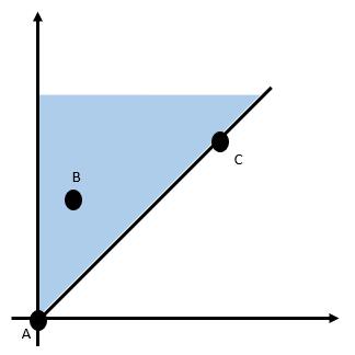由于 B、C 都在 R1 区域内,那么 y-x>0 且 x>0,分情况讨论有: