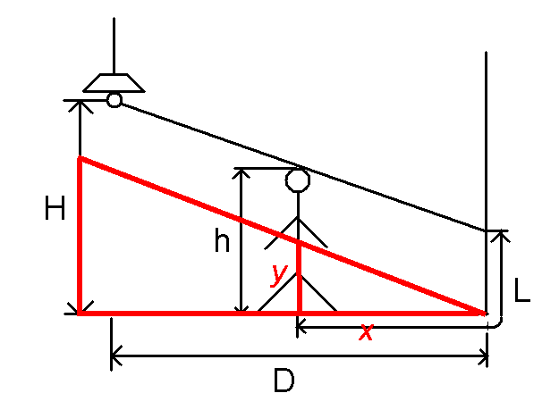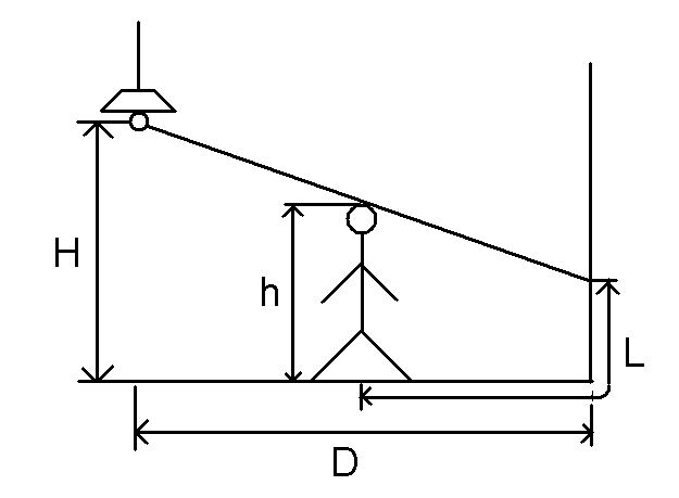 Compared to wildleopard's wealthiness, his brother mildleopard is rather poor. His house is narrow and he has only one light bulb in his house. Every night, he is wandering in his incommodious house, thinking of how to earn more money. One day, he found that the length of his shadow was changing from time to time while walking between the light bulb and the wall of his house. A sudden thought ran through his mind and he wanted to know the maximum length of his shadow.