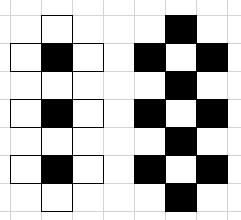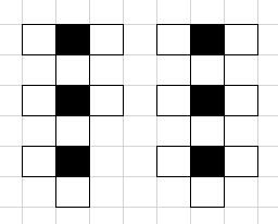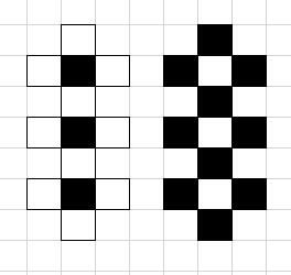 n<m 时:需要以黑块为基准,从上到下依次放置 n 个白块 n 个黑块,剩下 sub=m-n 个黑块,若 sub 为偶数时,从上到下依次放置到之前的 2n 块棋盘两端,若 sub 为奇数时,需要将多余的一个白块放置在一黑块的两端