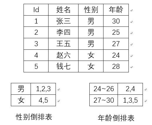 - 记录号表:存储具有相同次关键字的所有记录的记录号,并且有序排列