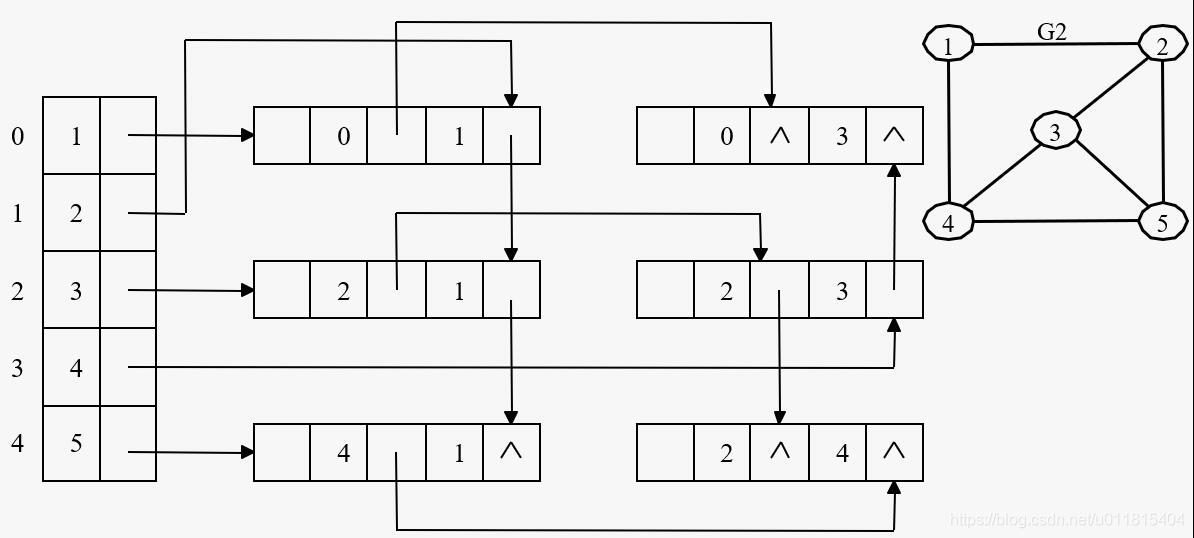 对于图 G 的每个顶点 vi,将所有邻接于 vi 的顶点链成一个单链表,称为 vi 的边表,若图 G 是一有向图,则称为 vi 的出边表。