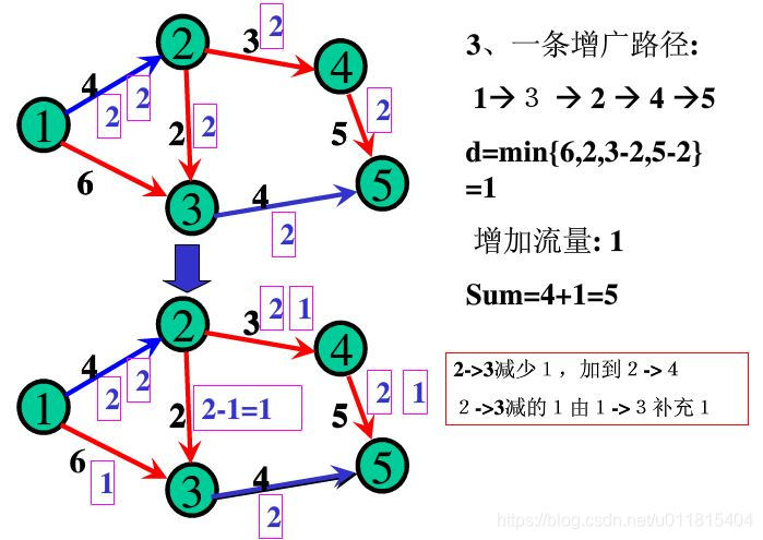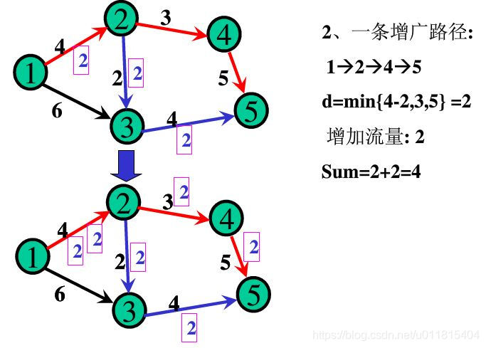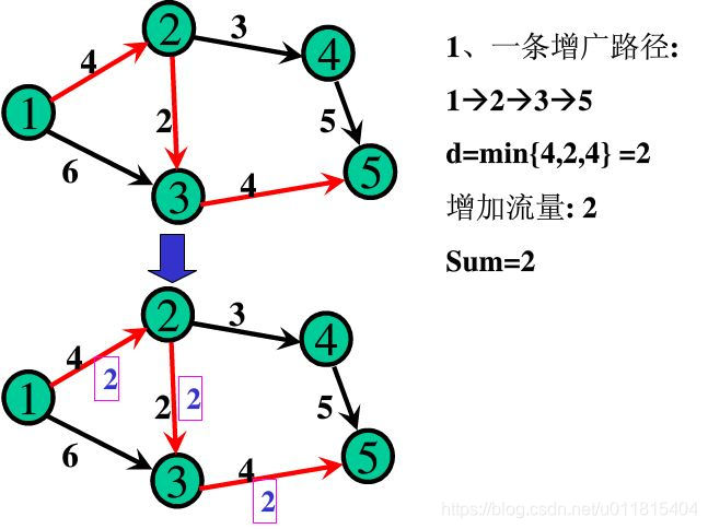 程序的实现过程与增广路求最大流的过程基本一致,即每一次更新都进行一次找增广路然后更新路径上的流量的过程。