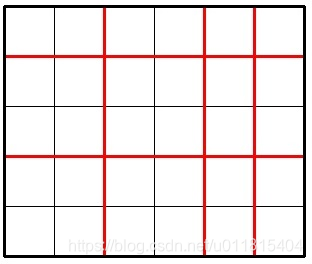 假设横向切了 x-1 次,纵向切了 y-1 次,那么横着就分为 x 份,纵着就分为 y 份