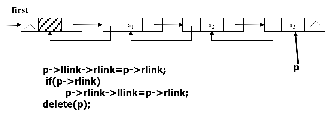 s->rlink=p->rlink;//新结点s的右指针指向工作结点p之后的结点