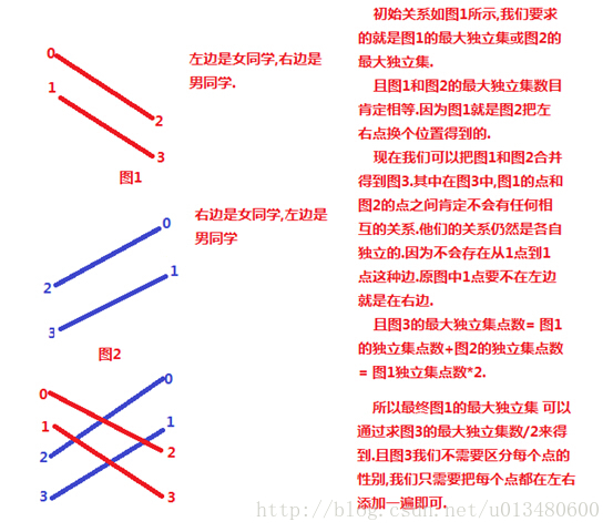 思路:根据题意,关系彼此是对应的,但由于没有给出具体男女性别,因此可以在两边同时建图,统计最大匹配数,最后算出的最大匹配数除以 2 就是实际图的最大匹配数,再求最大独立集即可