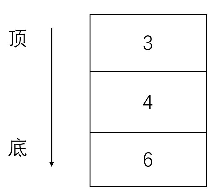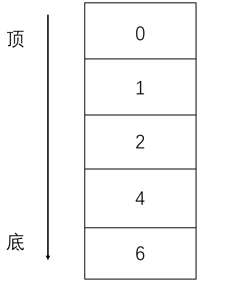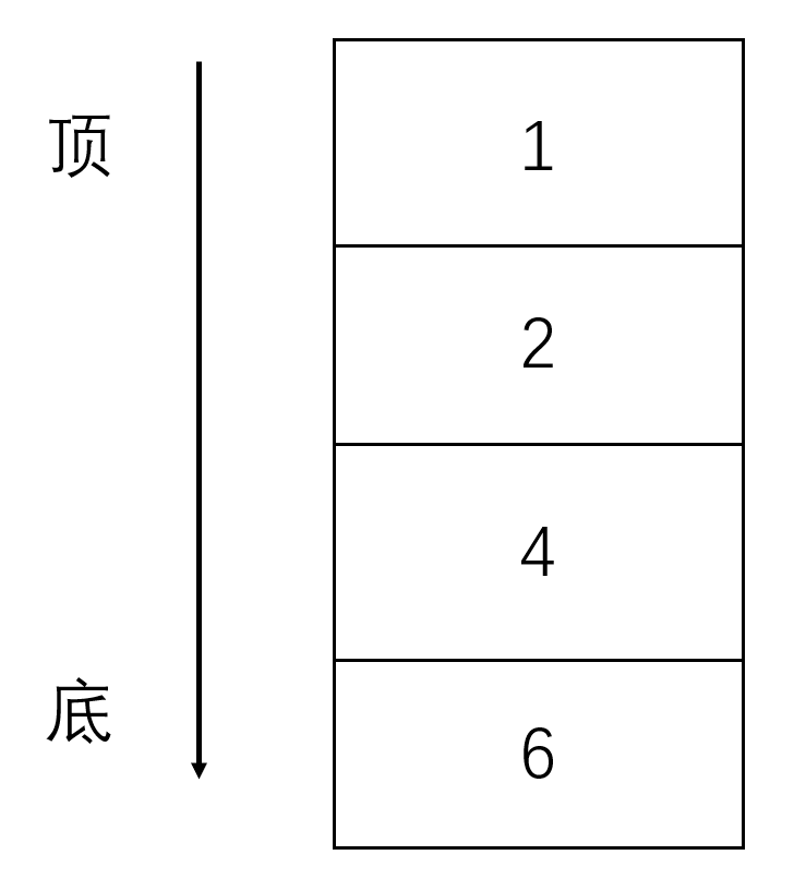 以下图单调递减的栈为例,从栈顶到栈底初始元素为:6、4、2、1