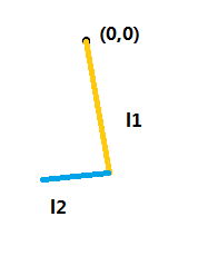 小希现在手里有一个连着的两块木条,长度分别为l1,l2,木条之间有一个无摩擦的连接点,木条之间可以相互转动,小希将其称之为双截棍。