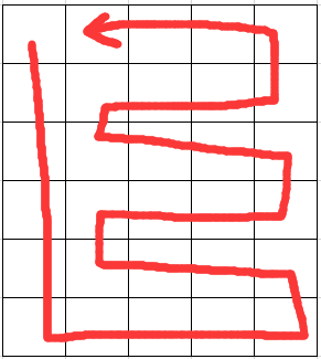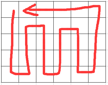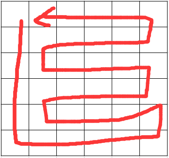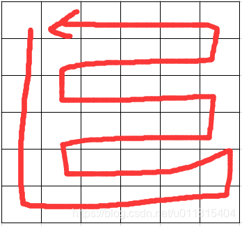 现在它想不重复地走过所有格子(除了起点),最后回到左上角的一个方案。