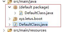 我们交由Spring管理的类,需要放入一个包下。如下图中的DefaultClass.java是不行的。因为Spring Boot对带注解的类进行扫描的时候,这些默认包路径下的类会出问题。