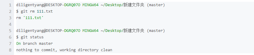 可以看到,文件已经撤销到了工作区,但是现在文件的内容还没有变化,如果想要恢复到修改之前的状态就使用