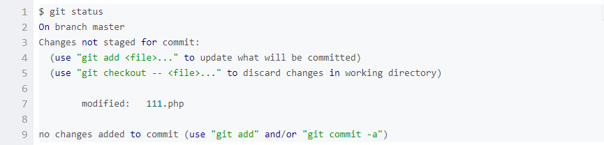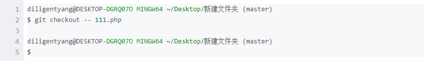 可以看到 111.php 修改了,但是还没有提交到暂存库,我们对这个文件进行撤销操作