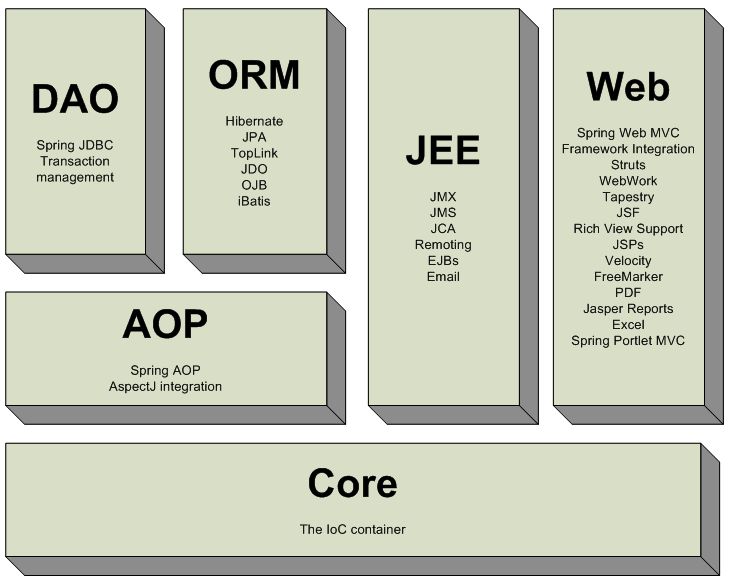Spring是一个非常活跃的开源框架;它是一个基于Core来构架多层JavaEE系统的框架,它的主要目地是简化企业开发.