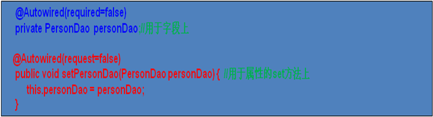 1 package com.itheima09.s2sh.test; 2 3 import org.junit.Test; 4 5 import com.itheima09.s2sh.domain.Person; 6 import com.itheima09.s2sh.service.PersonService; 7 8 public class PersonTest extends SpringUtils{ 9 @Test 10 public void testSavePerson(){ 11 PersonService personService = (PersonService)context.getBean("personService"); 12 Person person = new Person(); 13 person.setName("aa"); 14 personService.savePerson(person); 15 } 16 }