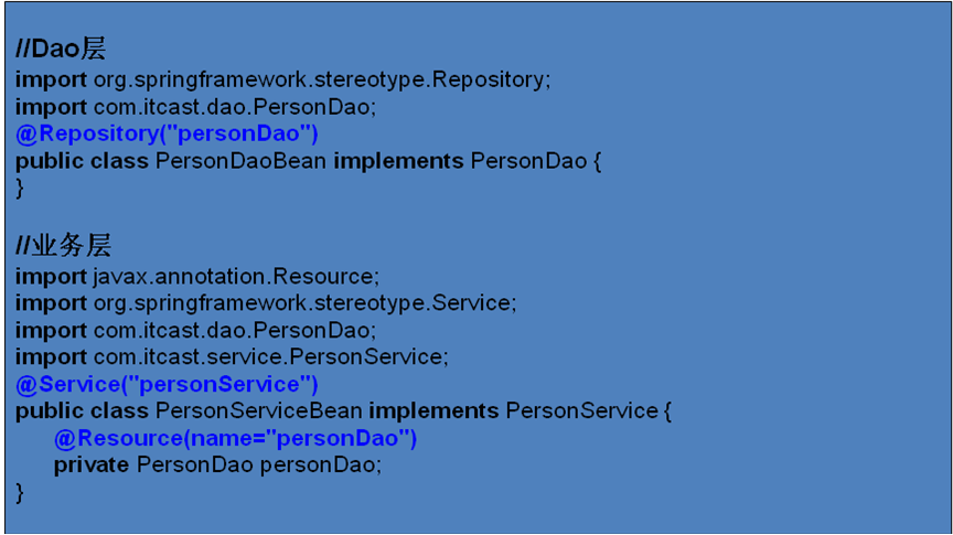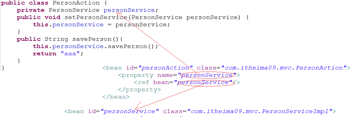 <bean id=“personService" class="cn.itcast.bean.impl.PersonServiceImpl"/>