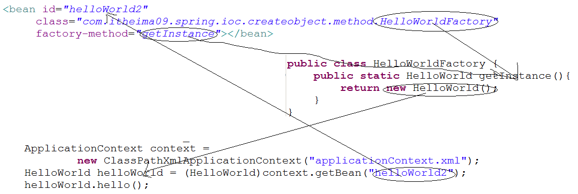 <bean id="personService" class="com.itcast.factory.PersonServiceFactory" factory-method="createPersonService" />