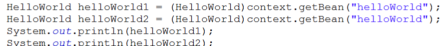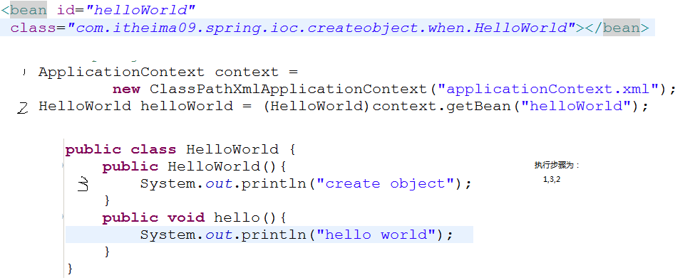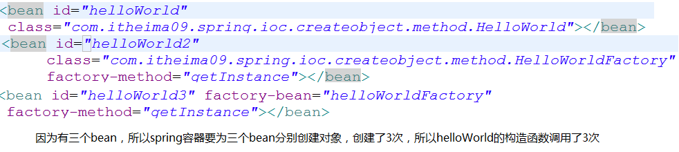 可以看出:spring内部默认是调用了HelloWorld这个类的默认的构造函数创建对象