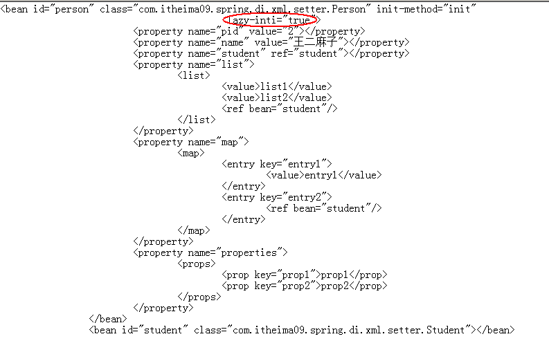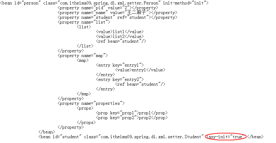 但是如果一个bean中有一个属性,该属性含有大量的数据,这个时候不希望该bean过早的停留在内存中。这个时候需要用到lazy-init为true。