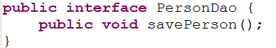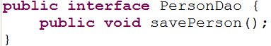 1 package com.itheima09.s2sh.dao; 2 3 import com.itheima09.s2sh.domain.Person; 4 5 public interface PersonDao { 6 public void savePerson(Person person); 7 }