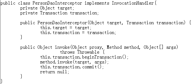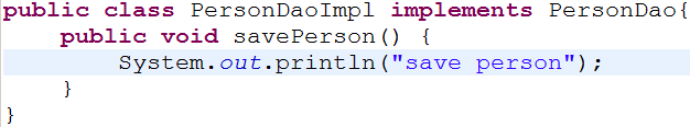 1 package com.itheima09.s2sh.service.impl; 2 3 import com.itheima09.s2sh.dao.PersonDao; 4 import com.itheima09.s2sh.domain.Person; 5 import com.itheima09.s2sh.service.PersonService; 6 7 public class PersonServiceImpl implements PersonService{ 8 private PersonDao personDao; 9 public void setPersonDao(PersonDao personDao) { 10 this.personDao = personDao; 11 } 12 @Override 13 public void savePerson(Person person) { 14 this.personDao.savePerson(person); 15 } 16 }