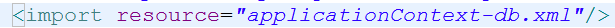 1 <?xml version="1.0" encoding="UTF-8"?> 2 <beans xmlns="http://www.springframework.org/schema/beans" 3 xmlns:aop="http://www.springframework.org/schema/aop" xmlns:tx="http://www.springframework.org/schema/tx" 4 xmlns:xsi="http://www.w3.org/2001/XMLSchema-instance" 5 xsi:schemaLocation="http://www.springframework.org/schema/beans 6 http://www.springframework.org/schema/beans/spring-beans-2.5.xsd 7 http://www.springframework.org/schema/aop 8 http://www.springframework.org/schema/aop/spring-aop-2.5.xsd 9 http://www.springframework.org/schema/tx 10 http://www.springframework.org/schema/tx/spring-tx-2.5.xsd"> 11 <import resource="applicationContext-db.xml"/> 12 <import resource="applicationContext-person.xml"/> 13 </beans>