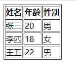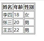 <!DOCTYPE html> <html lang="en"> <head> <meta charset="UTF-8"> <meta name="viewport" content="width=device-width, initial-scale=1.0"> <title>Document</title> </head> <body> <table border="1"> <thead> <tr> <th>姓名</th> <th>年龄</th> <th>性别</th> </tr> </thead> <tbody></tbody> </table> </body> <script> var arr = [ { "name":"张三", "age":20, "sex":"男", }, { "name":"李四", "age":18, "sex":"女", }, { "name":"王五", "age":22, "sex":"男", }, ] var tmp = {}; for(var i = 0; i < arr.length-1; i++){ for(var j = 1; j < arr.length; j++){ if(arr[i].age > arr[j].age){ tmp = arr[i]; arr[i] = arr[j]; arr[j] = tmp; } } } var tb = document.querySelector("table"); for(var i = 0; i < arr.length; i++){ var tr = document.createElement("tr"); for(var attr in arr[i]){ var td = document.createElement("td"); td.innerText = arr[i][attr]; tr.appendChild(td); } tb.appendChild(tr); } </script> </html>