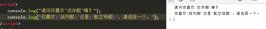 2.如果想单引号嵌套单引号,双引号嵌套双引号需要使用转义符比如:'你喜欢\'战列舰\'还是\'航空母舰\',请选择一个。'