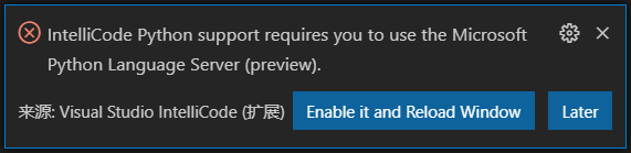 < IntelliCode Python support requires you to use the Microsoft Python Language Server (preview) >