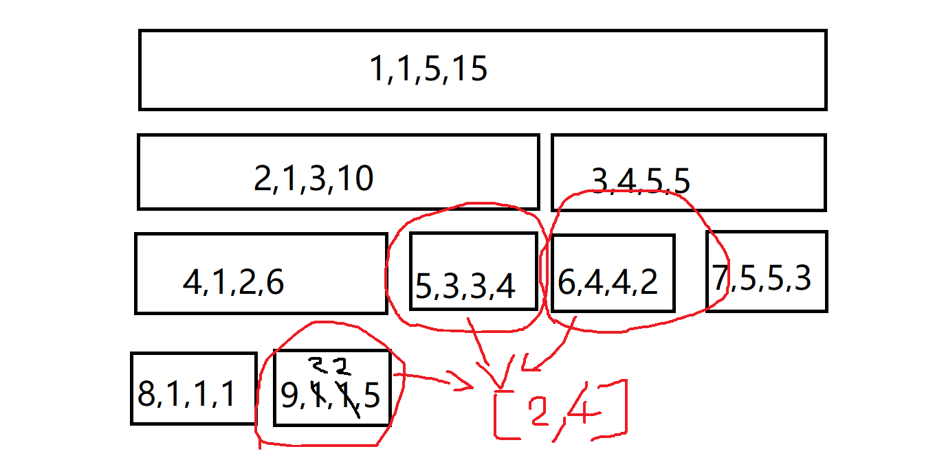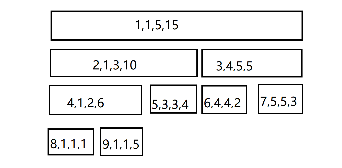 此时每个节点从左往右依次为:节点编号,左端点,右端点,区间和。 (不好意思,\(9\) 号节点的左右端点应该是 \([2,2]\),口头更正一下)