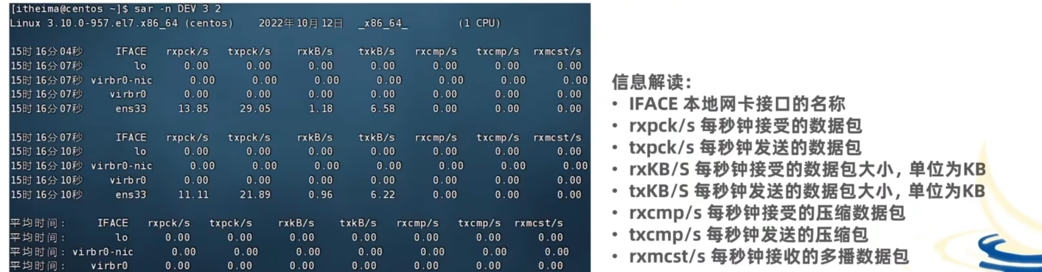 语法:sar -n DEV num1 num2- n 查看网络 DEV表示网络接口