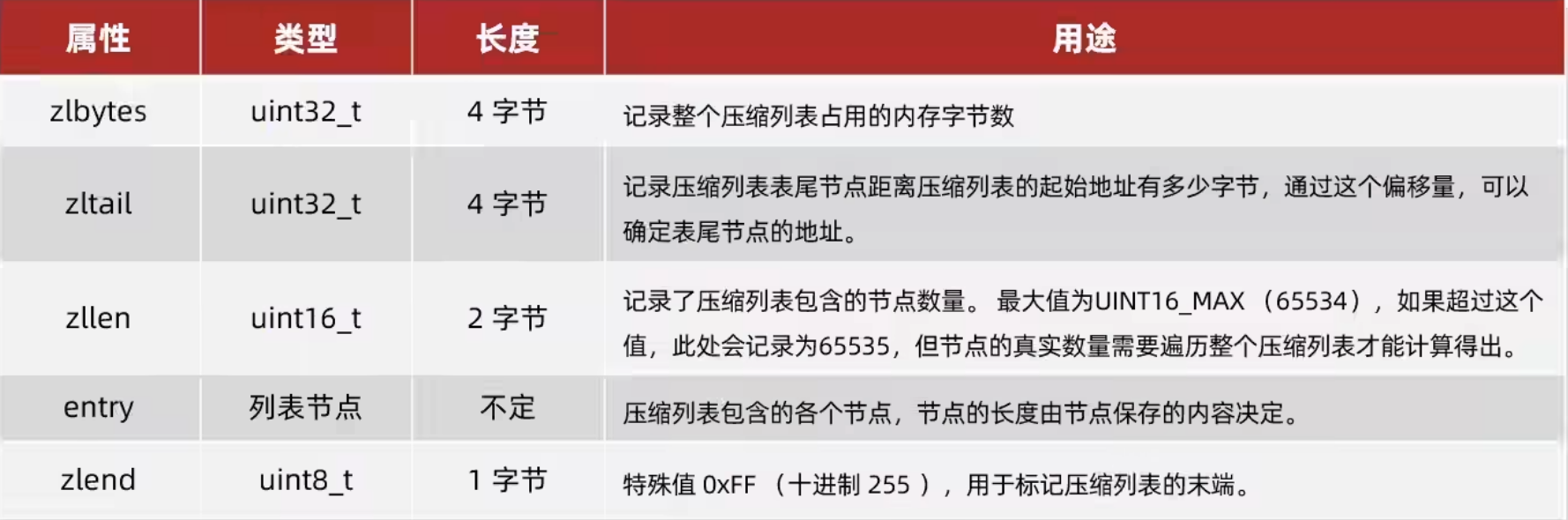 压缩表 是一种特殊的双端链表 不存在指针 有特殊编码的连续内存块组成 可以在任意一端进行压入/弹出操作 并且这种操作的时间复杂度是O(1)