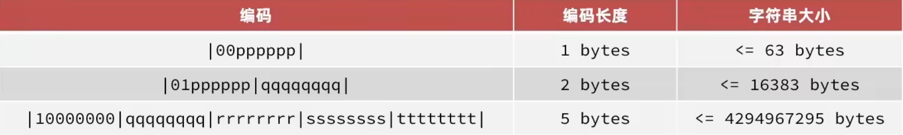 encoding 编码属性 记录content的数据类型(字符串还是整数)以及长度 占用1或2或5个字节