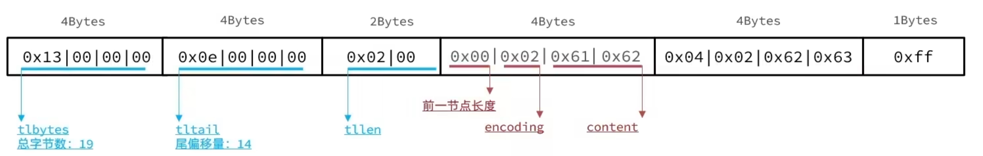 例如存储'ab'和'bc' 整个的ZipList应该是