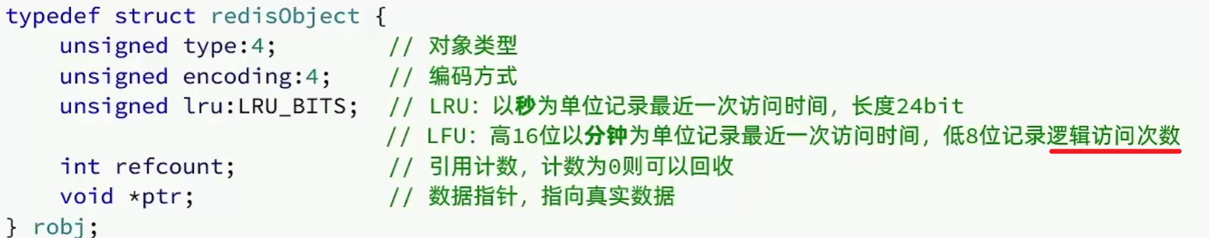 LFU的访问次数叫逻辑访问次数 因为并不是真的key被访问的所有次数 而是通过算法