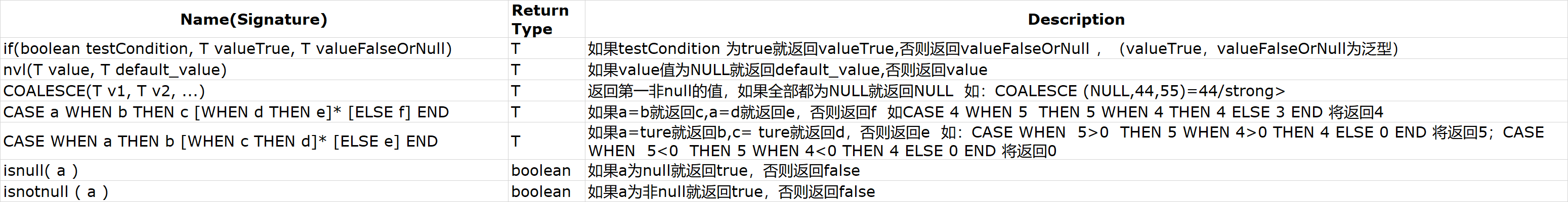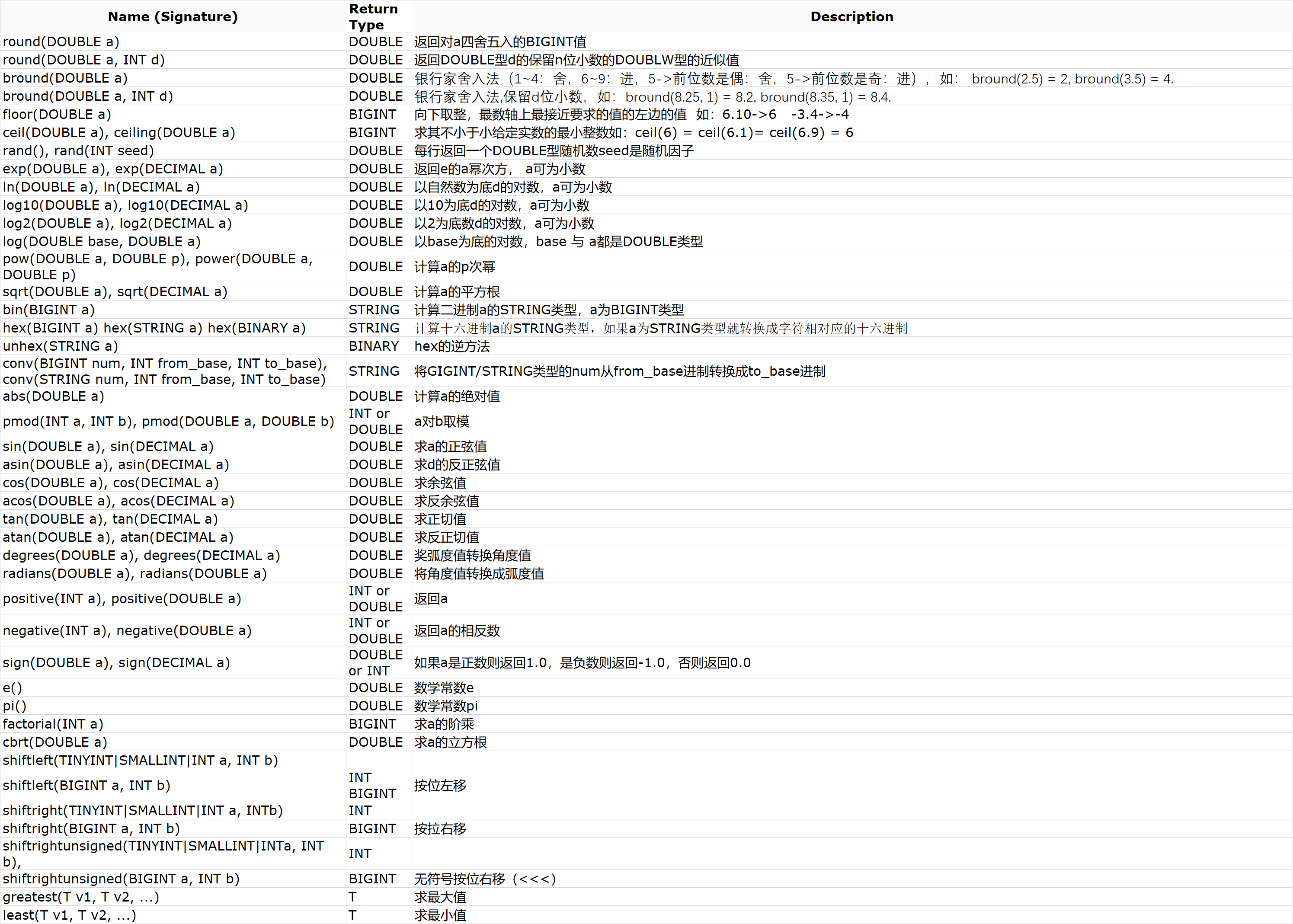 官方连接:https://cwiki.apache.org/confluence/display/Hive/LanguageManual+UDF#LanguageManualUDF-Built-inOperators