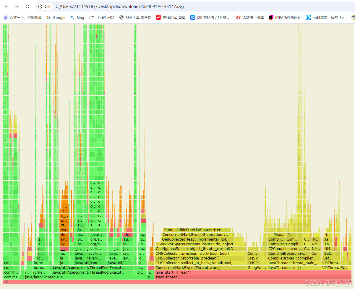 注意:生成的火焰图要从linux服务器下载到本地然后才能打开,而不是浏览器直接输入IP:端口去打开,那样无效。