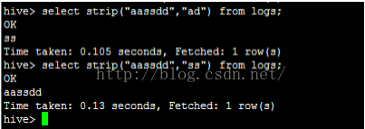 CREATE TEMPORARY FUNCTION strip AS'com.hadoopbook.hive.Strip';