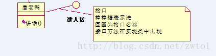 注意:有资料对接口的表示法分为:矩形表示法,棒棒糖表示法,本文用Rational Rose工具画的图,Rational Rose没有矩形表示法表示接口一项。