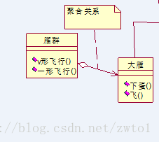 class WideGooseAggregate{ private WideGoose [] arraryWideGoose; //在雁群WideGooseAggregate类中,有大雁数组对象arrayWideGoose。 }聚合关系用空心的菱形和实现箭头表示。