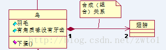 class Bird{ privite Wing wing; public Bird(){ wing = new Wing();//在Bird类中初始化时,实例化wing,它们之间同时生成。 } }